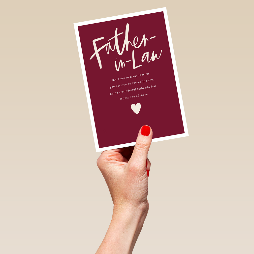 Show them you care with a personalised written verse Father's Day father-in-law card from Hallmark. Our Father's Day cards are printed on premium quality, FSC®-certified card & delivered nationwide.This card is available as standard 12cm by 16.7cm and large 15.5cm by 21.6cm.