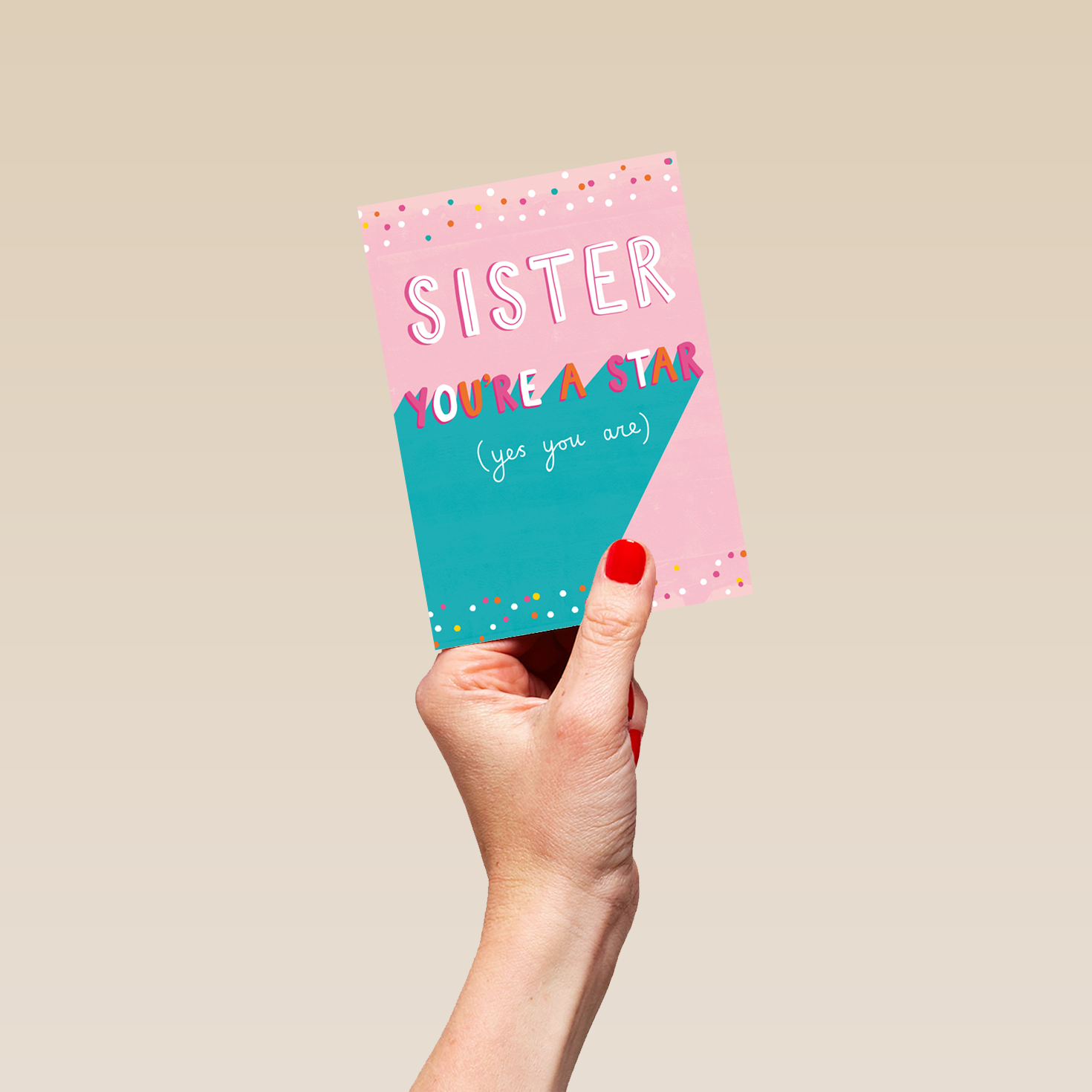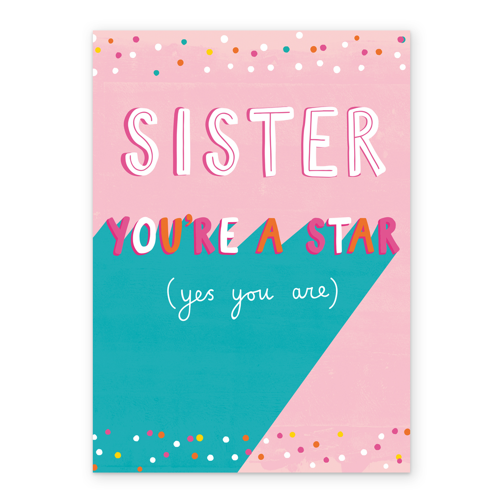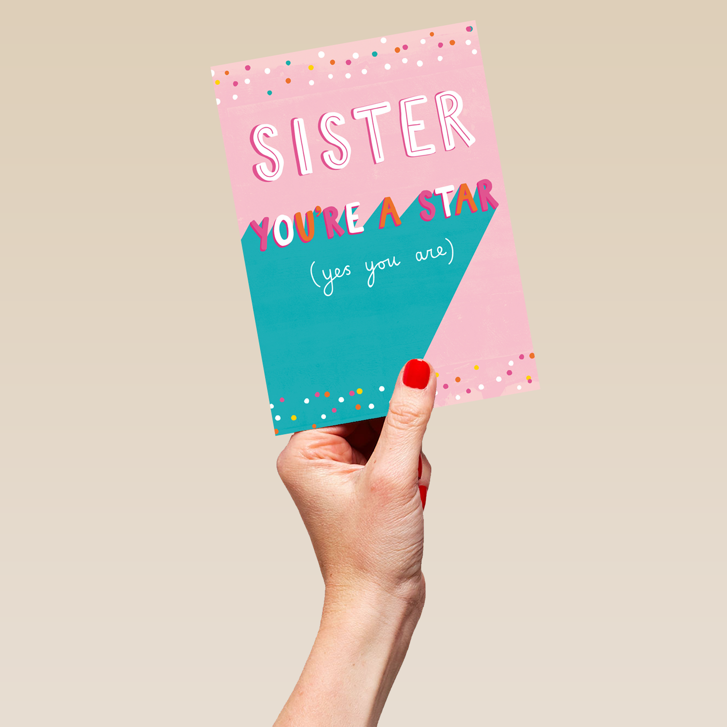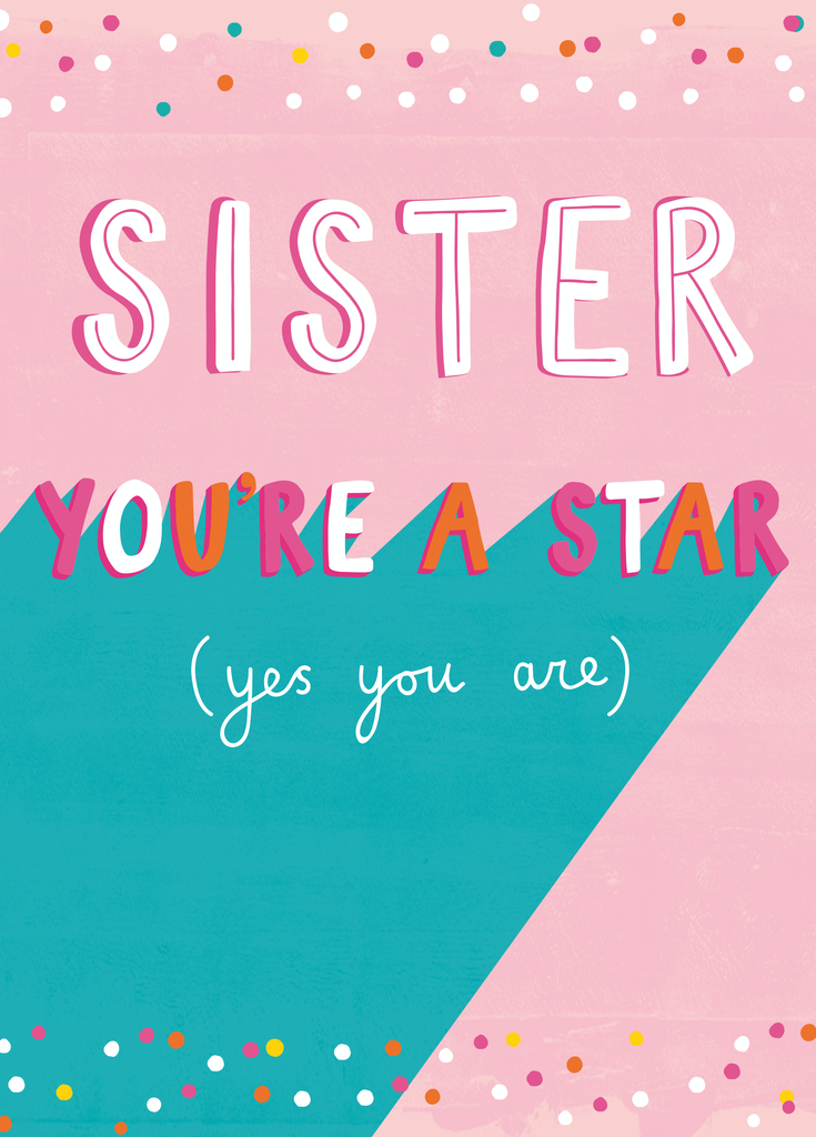 Show them you care with a personalised you're a star sister card from Hallmark. Our birthday cards are printed on premium quality, FSC®-certified card & delivered nationwide. This card is available as standard 12cm by 16.7cm and large 15.5cm by 21.6cm.