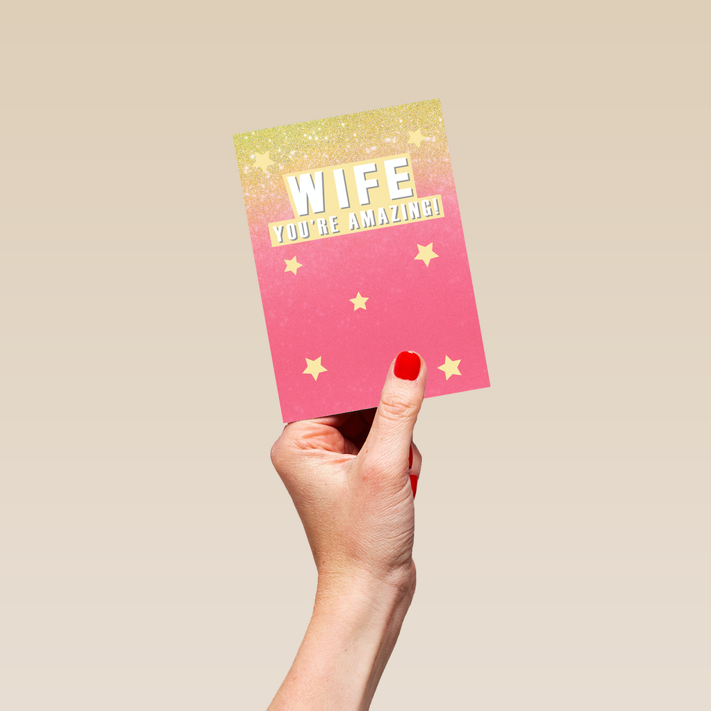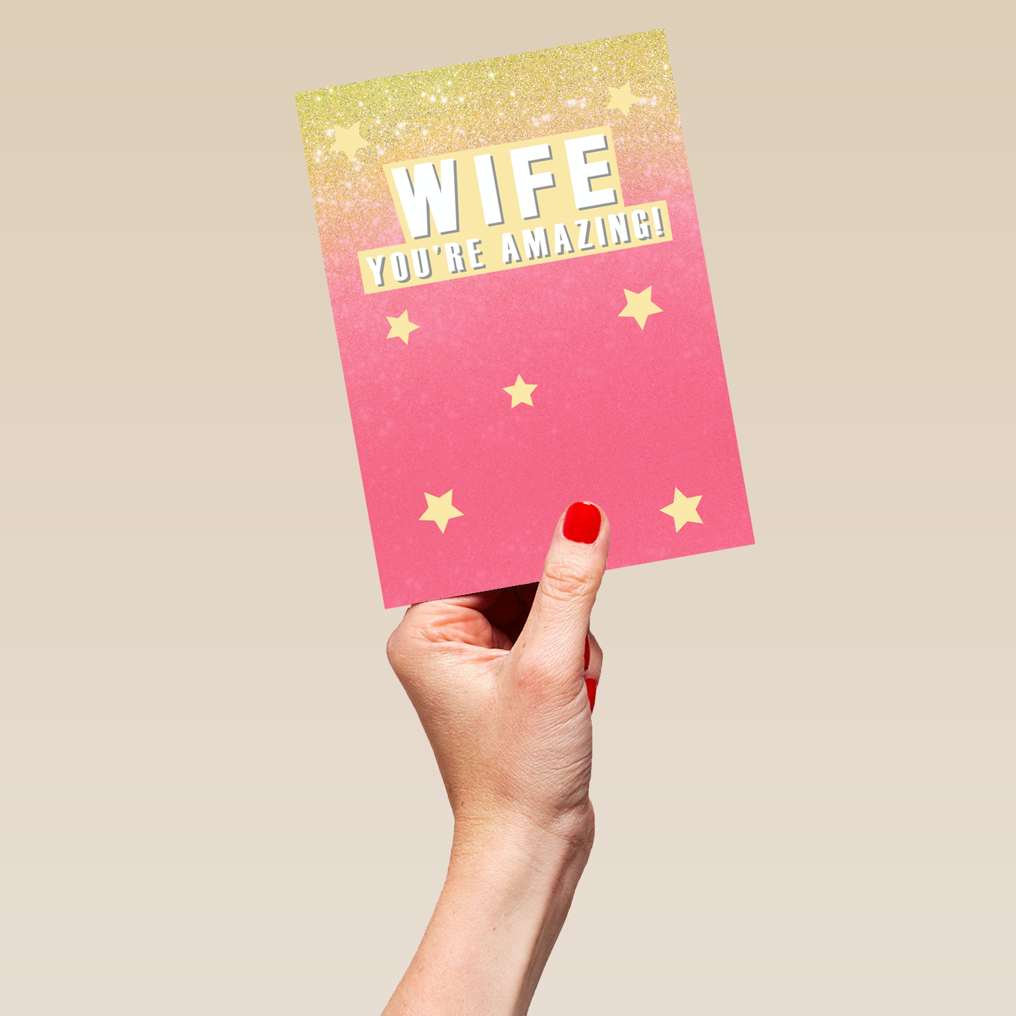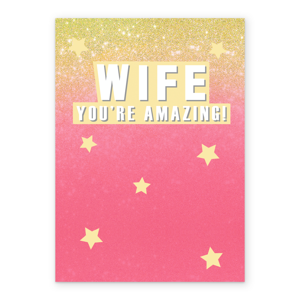 Show them you care with a personalised you're amazing card for wife from Hallmark. Our birthday cards are printed on premium quality, FSC®-certified card & delivered nationwide. This card is available as standard 12cm by 16.7cm and large 15.5cm by 21.6cm.