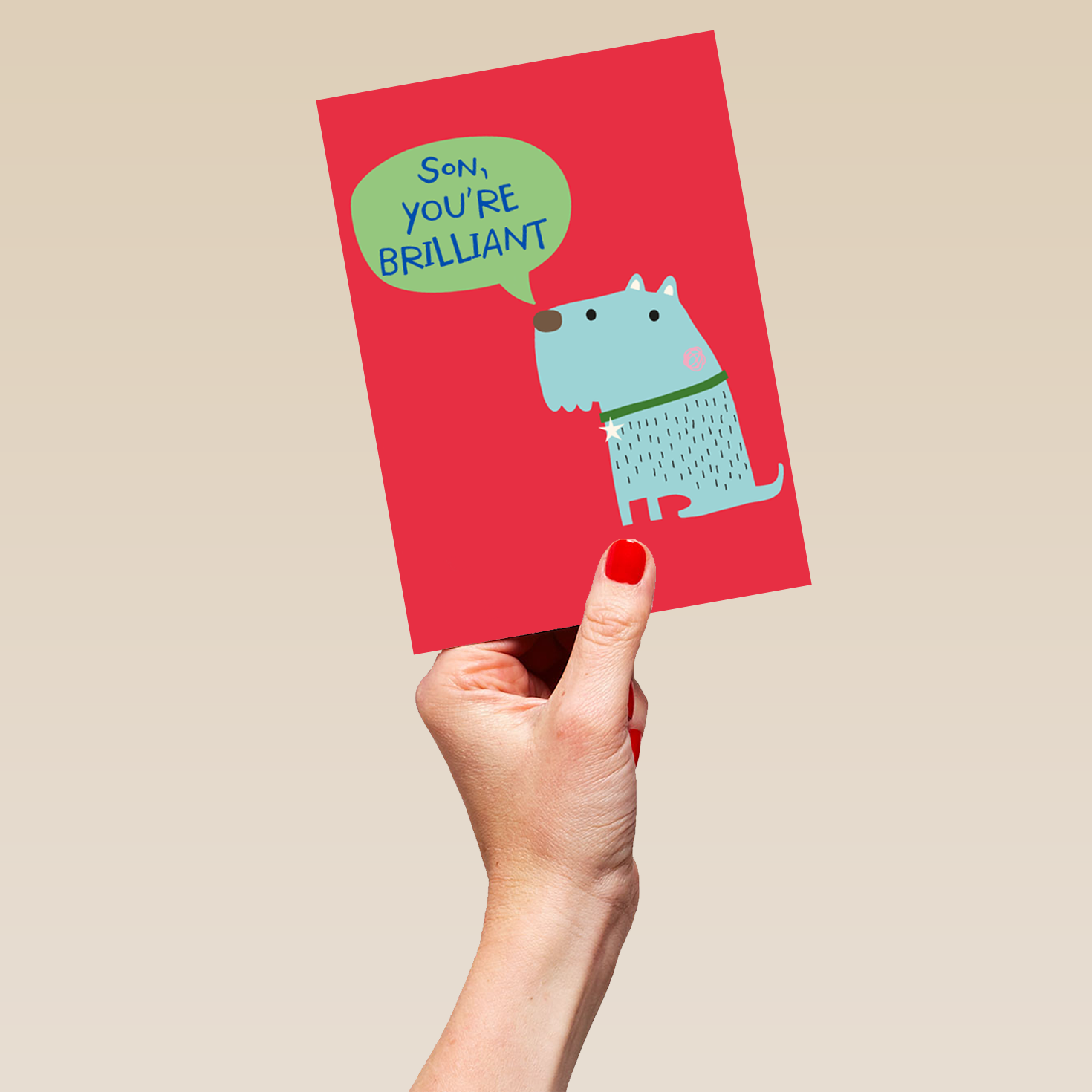 Show them you care with a personalised you're brilliant son birthday card from Hallmark. Our birthday cards are printed on premium quality, FSC®-certified card & delivered nationwide. This card is available as standard 12cm by 16.7cm and large 15.5cm by 21.6cm.