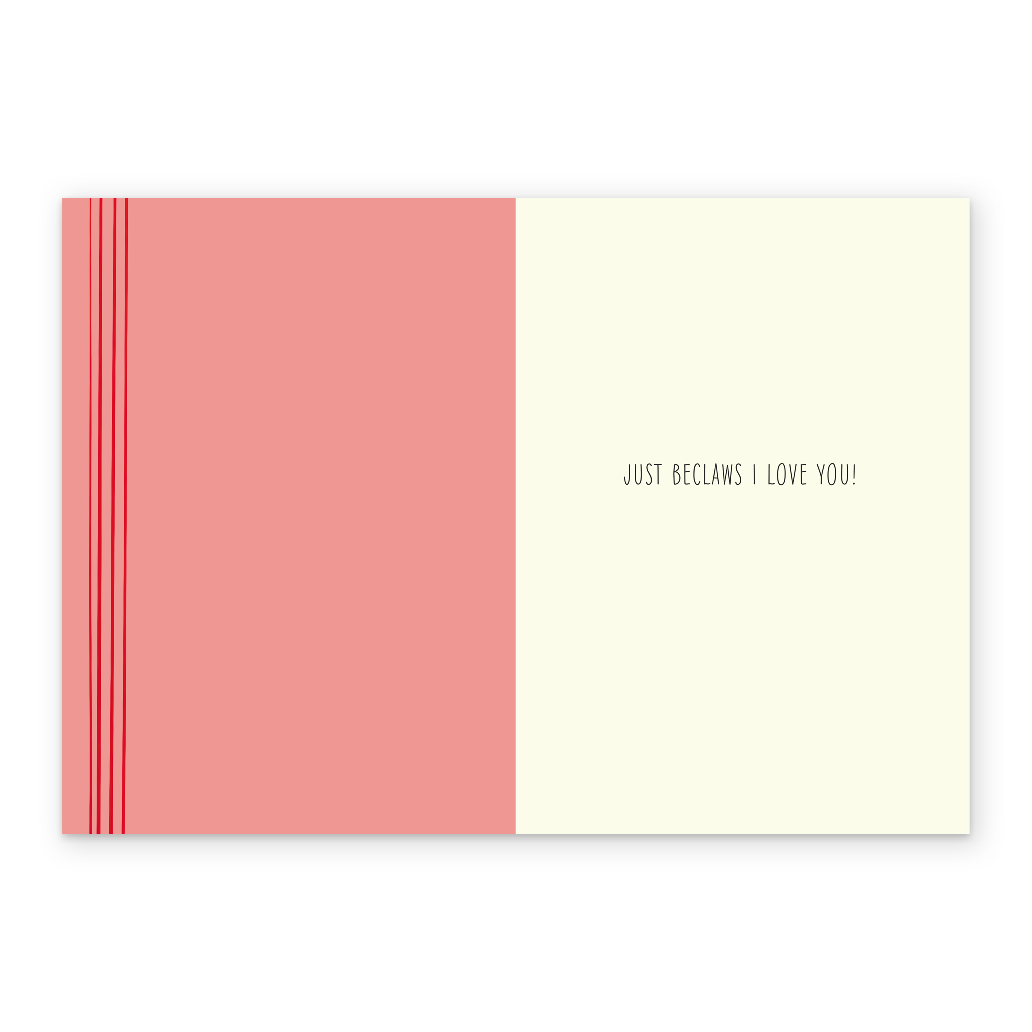 Message inside reads: Just Beclaws I Love You!