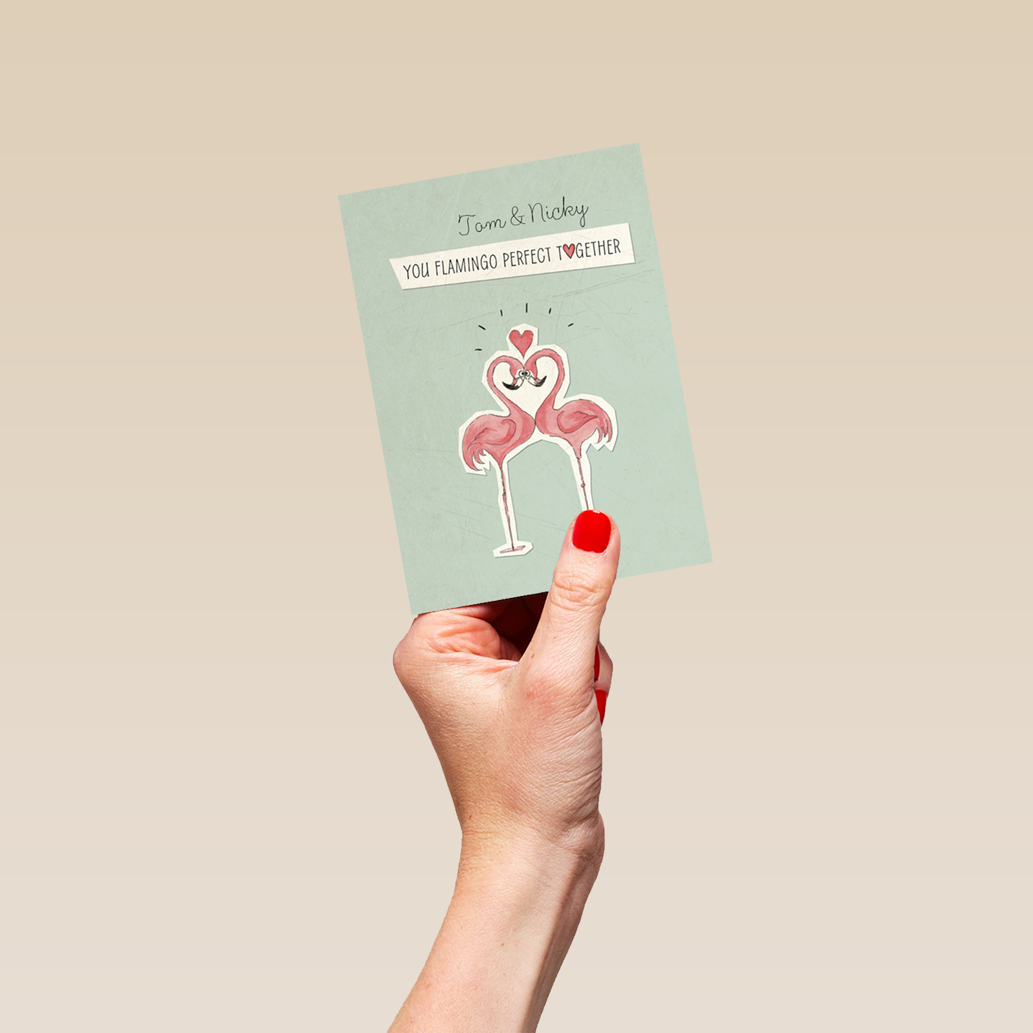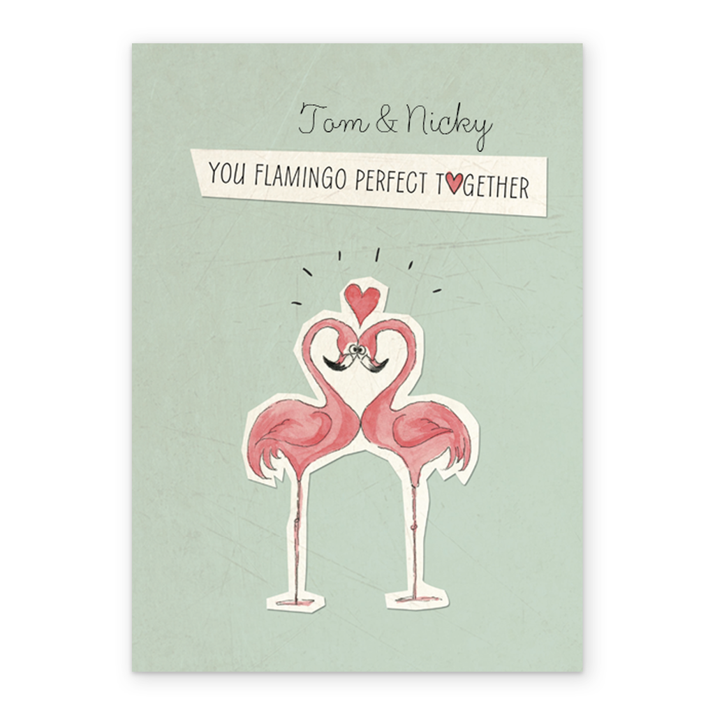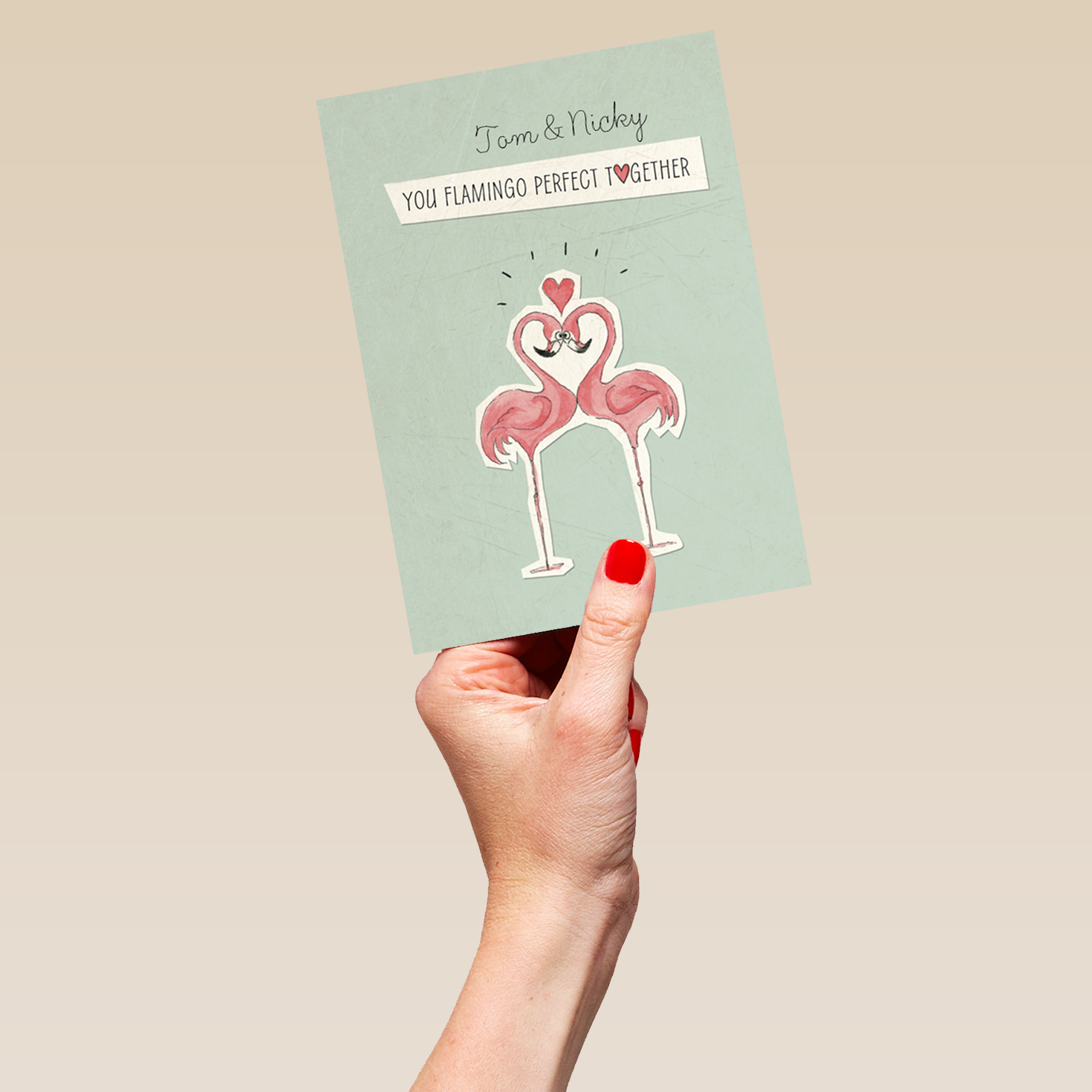 Show them you care with a personalised you're perfect together flamingo engagement card from H... View more details