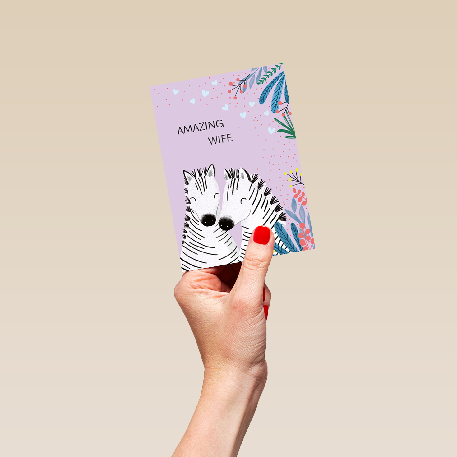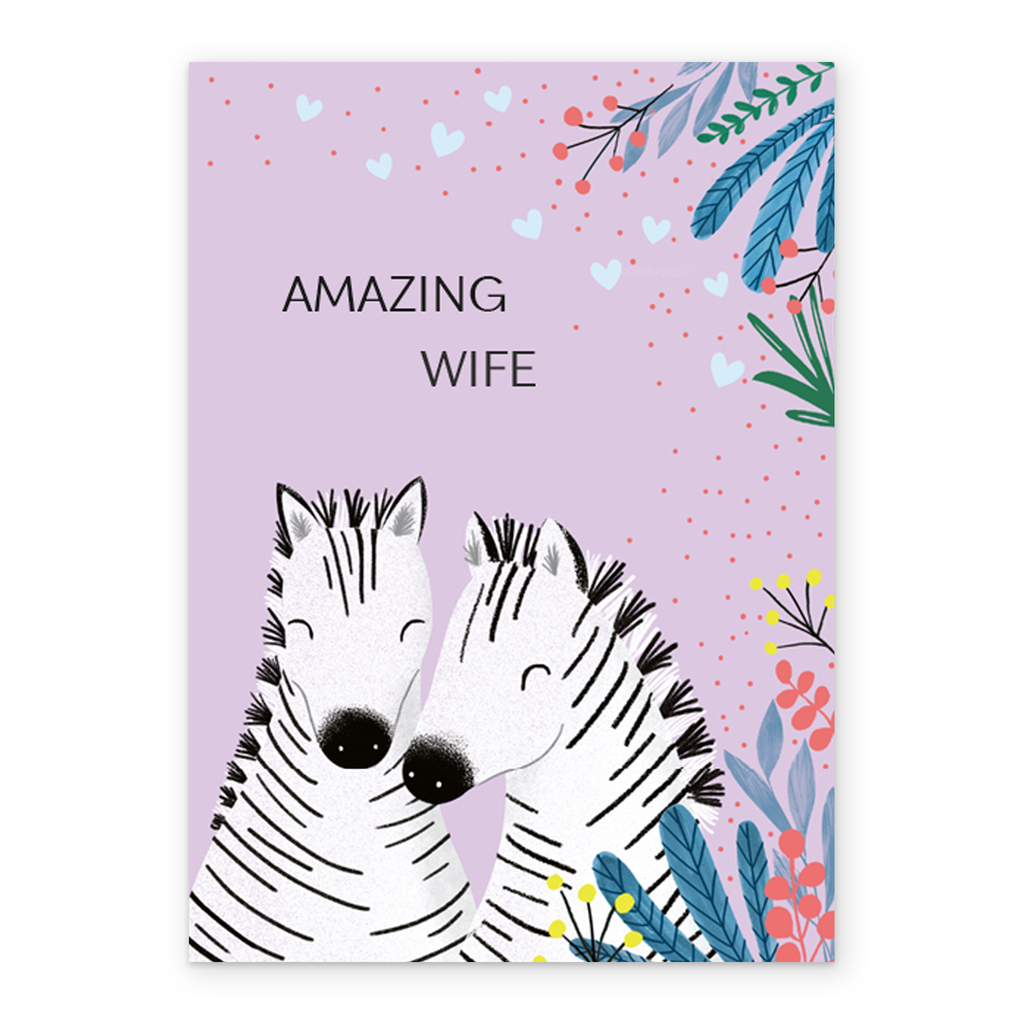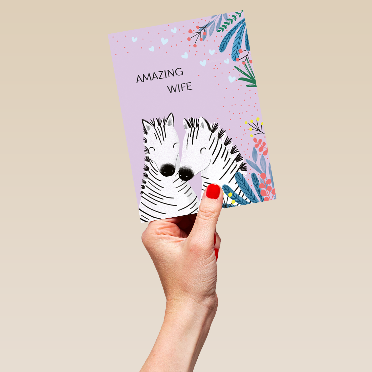 Show them you care with a personalised zebra illustration card for wife from Hallmark. Our birthday cards are printed on premium quality, FSC®-certified card & delivered nationwide. This card is available as standard 12cm by 16.7cm and large 15.5cm by 21.6cm.