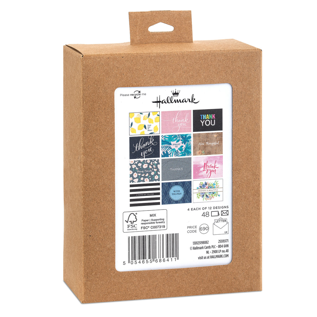 Printed on high-quality board, this pack of 48 cards contains 12 designs (4 of each design). Each card comes complete with a Hallmark branded, white envelope.