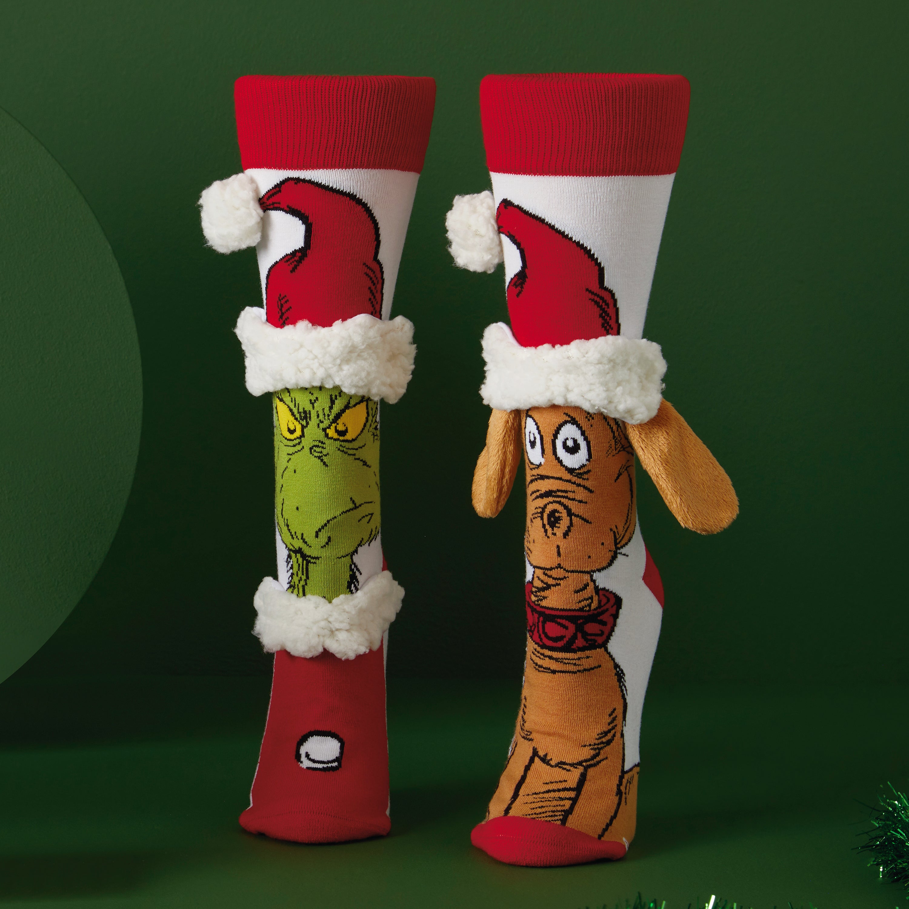 Get cosy by the fire and settle in to your corner of Whoville with this pair of fun novelty socks, perfect for those winter evenings snuggled in with hot chocolate and a movie. Surprise a fan of The Grinch and Dr Seuss with this adorable surprise.