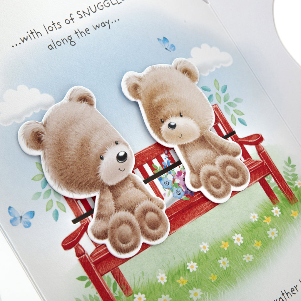 Features a Die-cut, Gatefold Design, a Clever Sliding Movement Mechanism when Opened and a Co-ordinating Dotty Pink Patterned, Hallmark Branded Envelope.