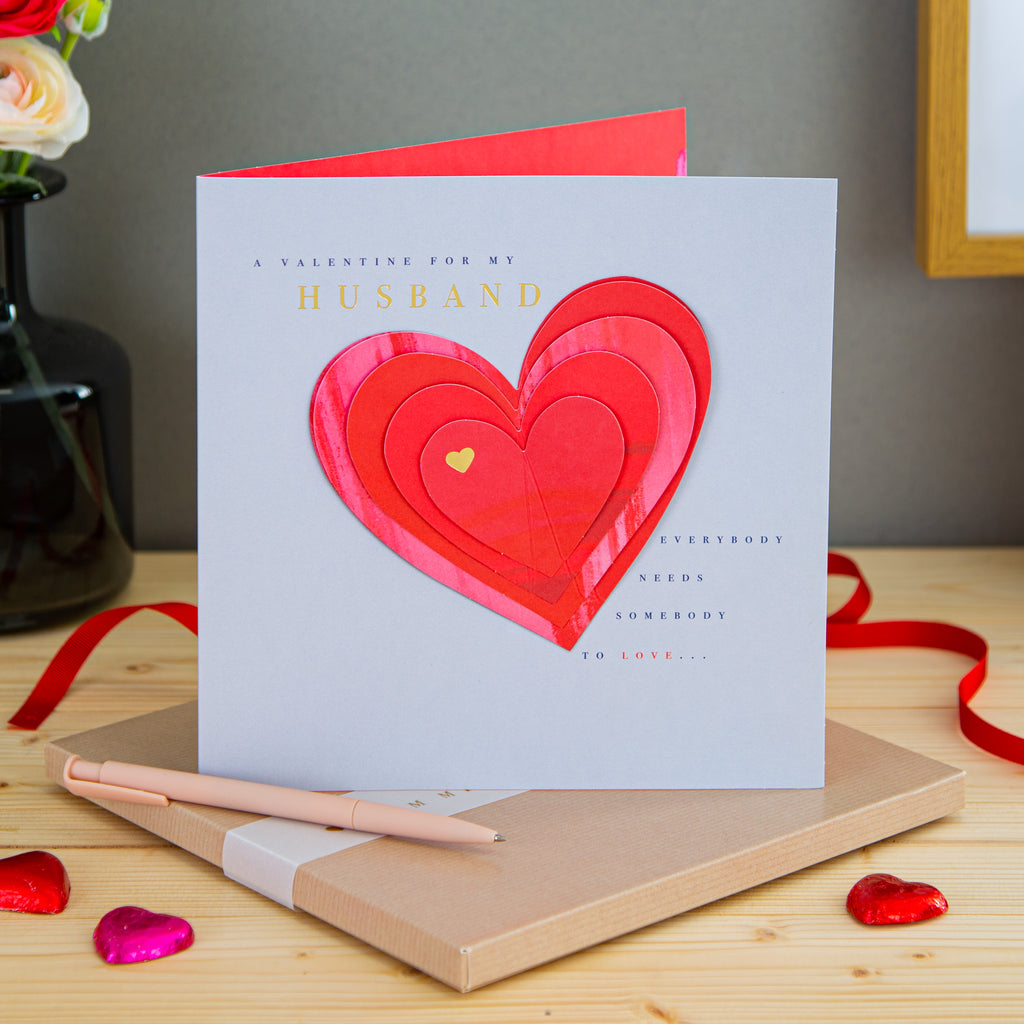 Valentine's Card for Husband - Traditional Love Heart Design with Gold Foil