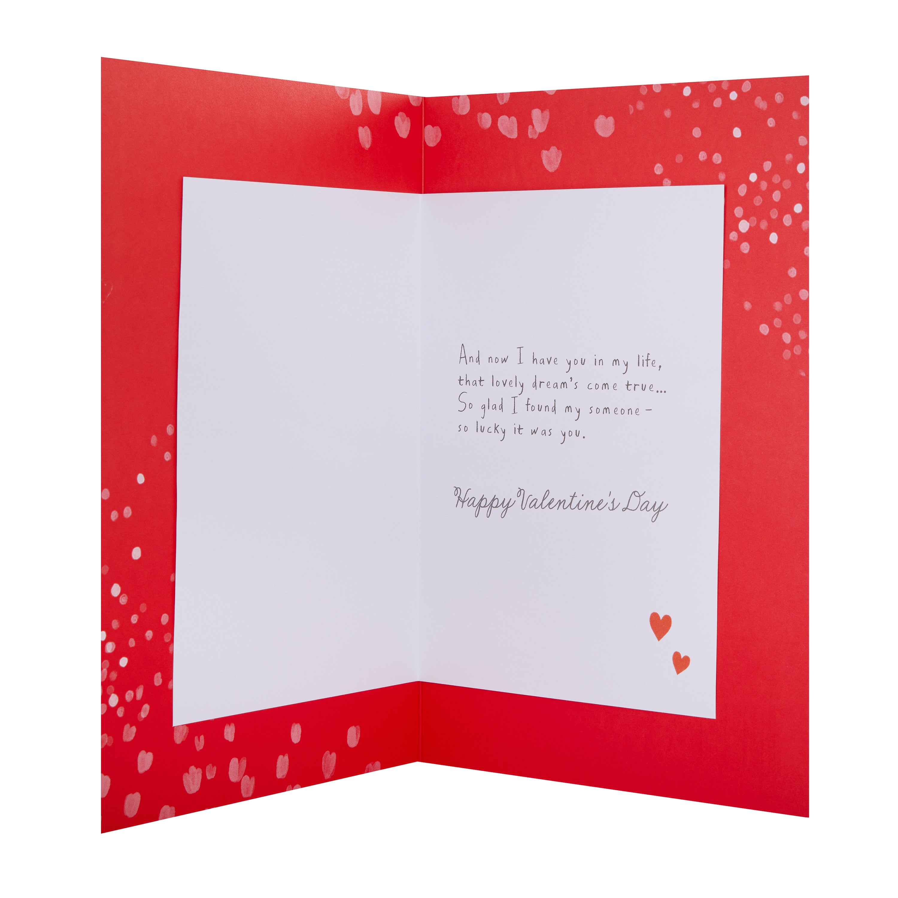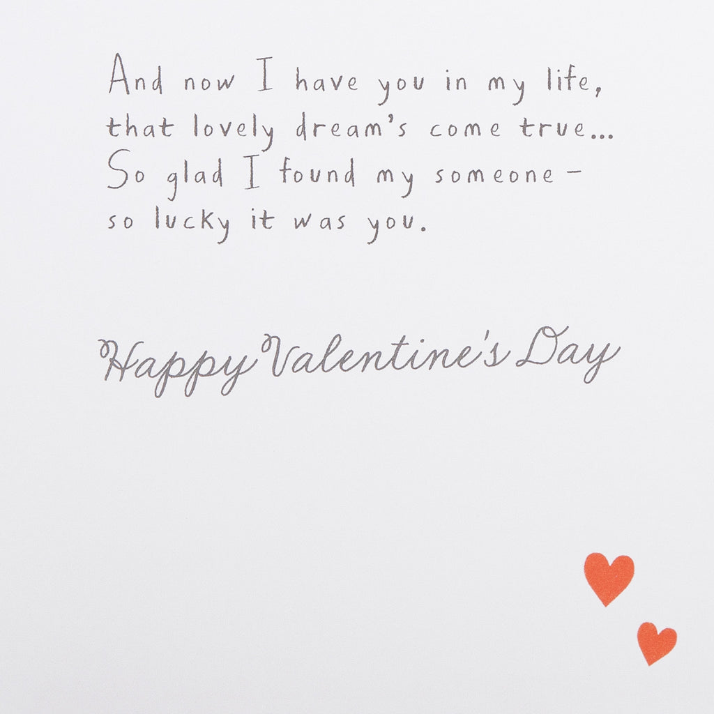 Message Inside Reads: And now I have you in my life, that lovely dream's come true... So glad I found my someone - so lucky it was you. Happy Valentine's Day