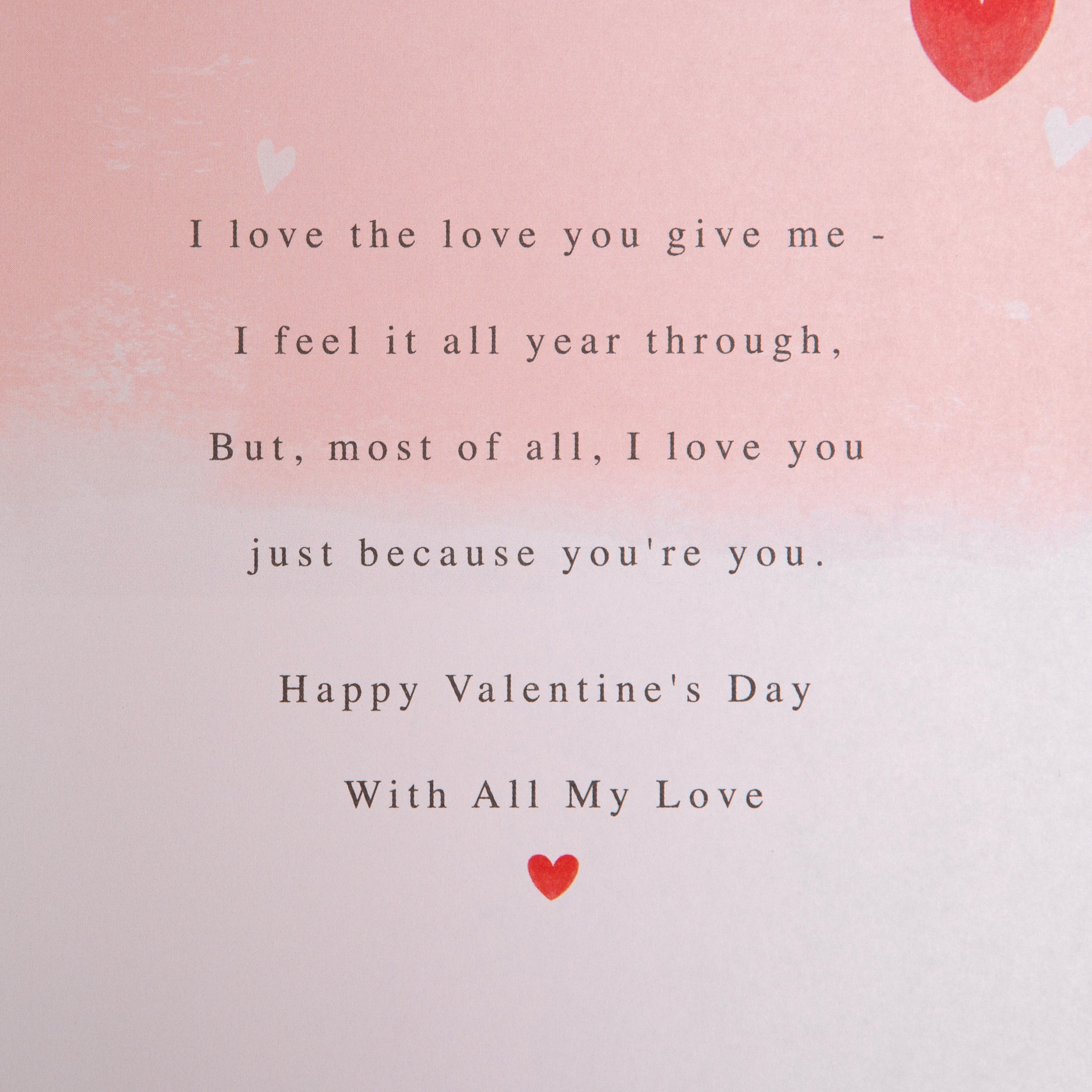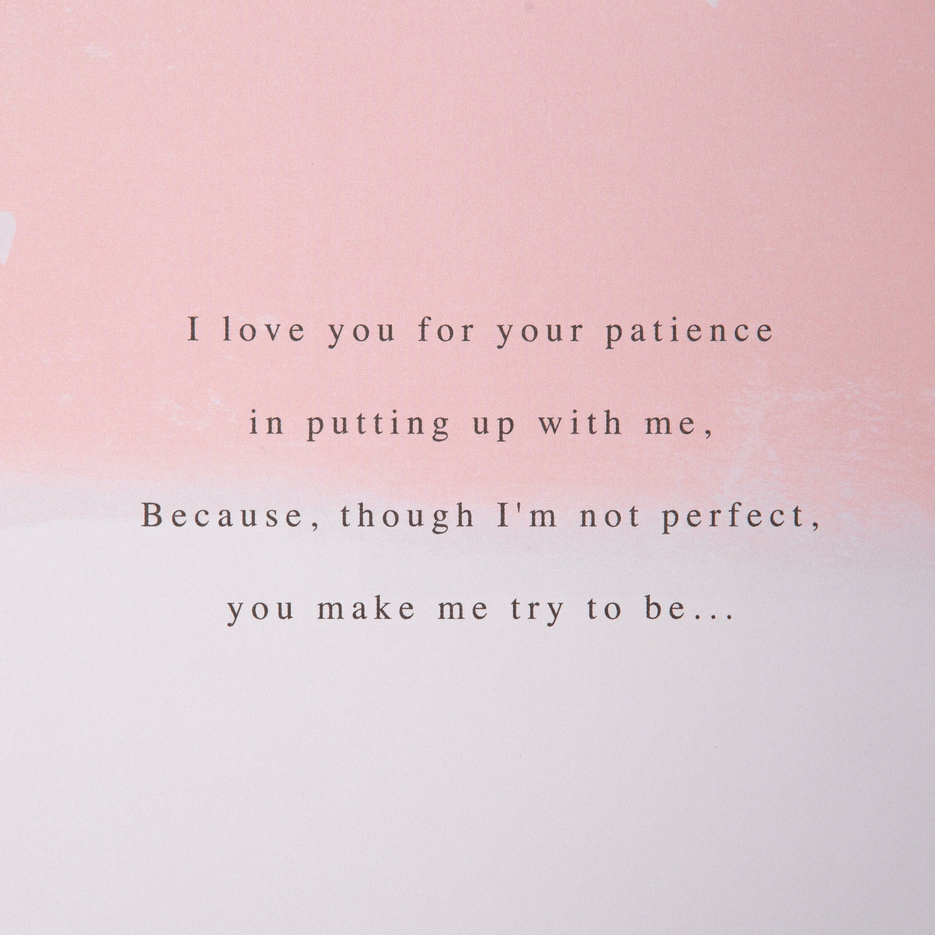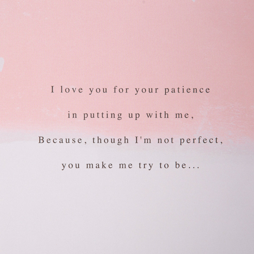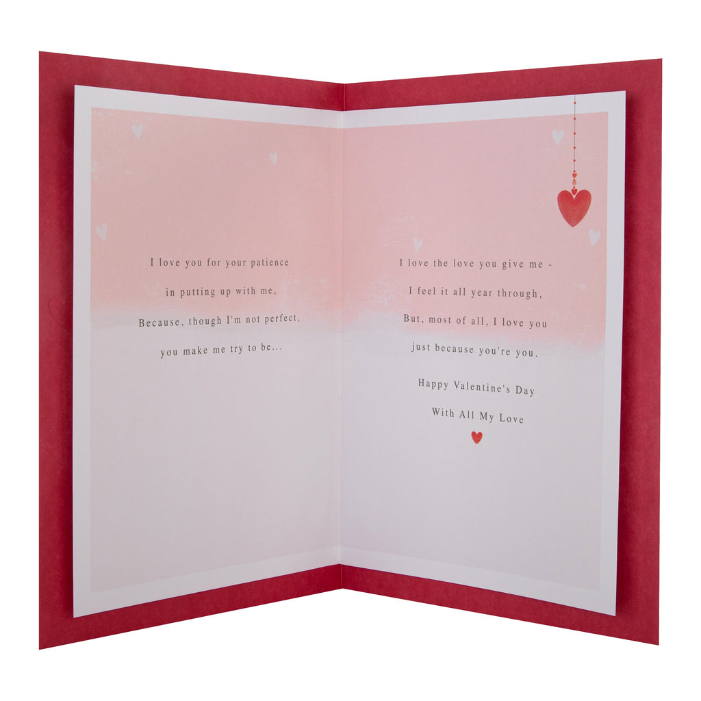 Message Inside Reads: I love you for your patience in putting up with me, Because, though I'm not perfect, you make me try to be… I love the love you give me - I feel it all year through, But, most of all, I love you just because you're you. Happy Valentine's Day With All My Love