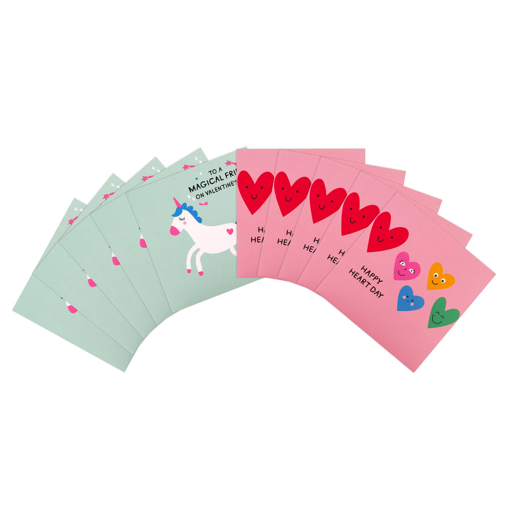 Valentine's Day Cards for Friends - Pack of 10 Cards in 2 Colourful Designs